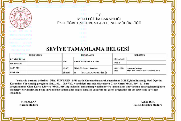 Milli Eğitim Bakanlığı tarafından verilen, ülke genelinde geçerli resmi bir belgedir. Öğrencilerimizin başarılarını ve yetkinliklerini resmî olarak belgelendirir.
